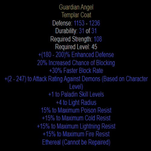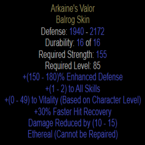 Arkaine's Valor Ethereal +2 All SkillsRegular Price From $6.30