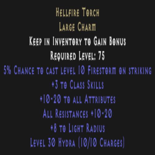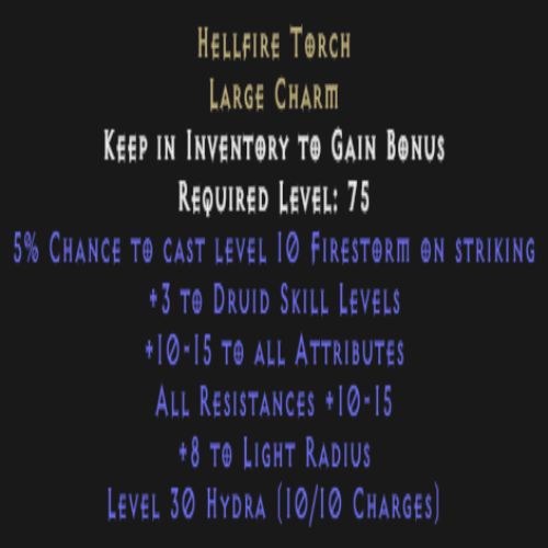 Druid Hellfire Torch 10-15 Stats 10-15 All Res