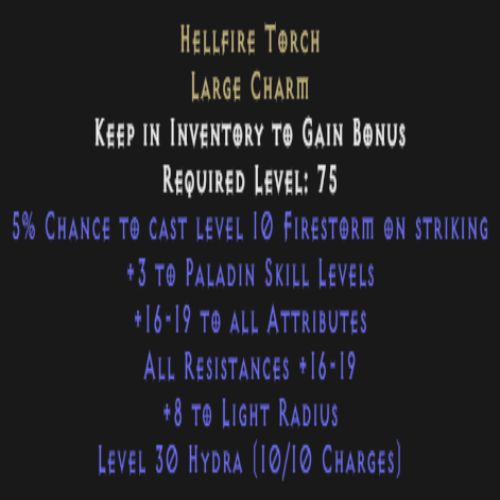 Paladin Hellfire Torch 20 Stats 20 All Res