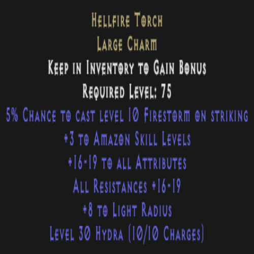 Amazon Hellfire Torch 10-15 Stats 10-15 All Res