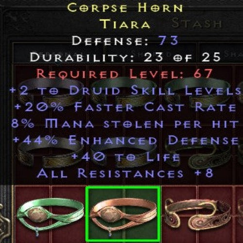 Corpse Horn 2 DS 20 FCR 8% MS 40 LIFE 8 ALL RESISTANCES