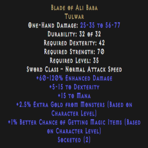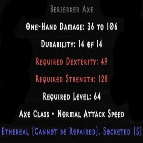 Blood Loop 10 FCR 6 MS 5 DEX 49 MANA 15 LR 9 MF